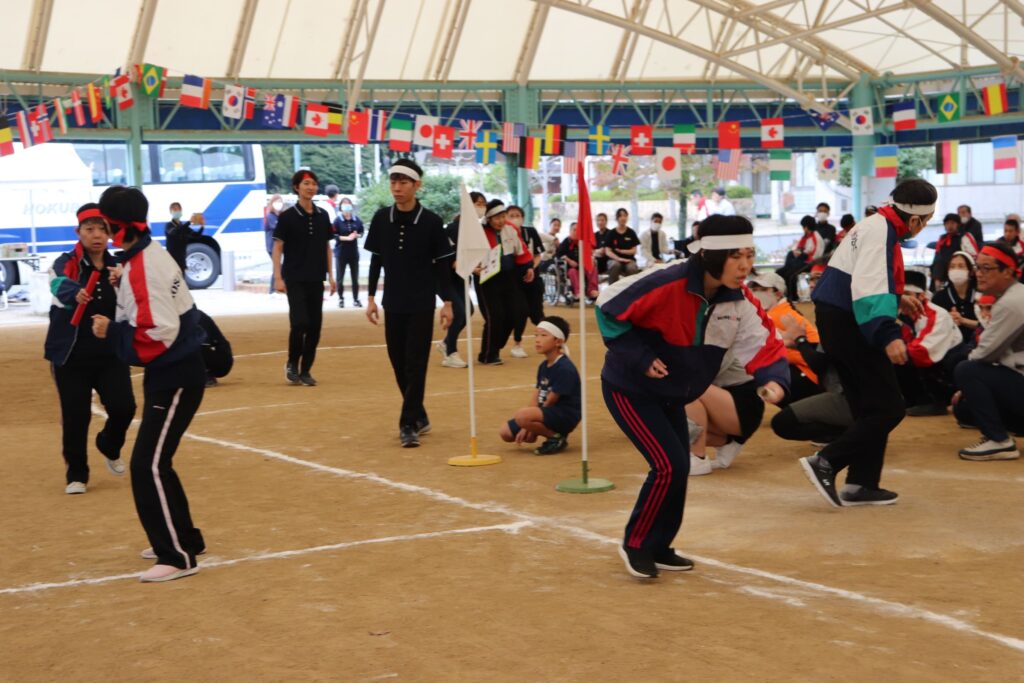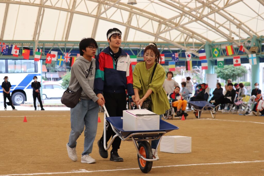 得点競技は3種目。まずは「ブロック運び」 協力して運びました。